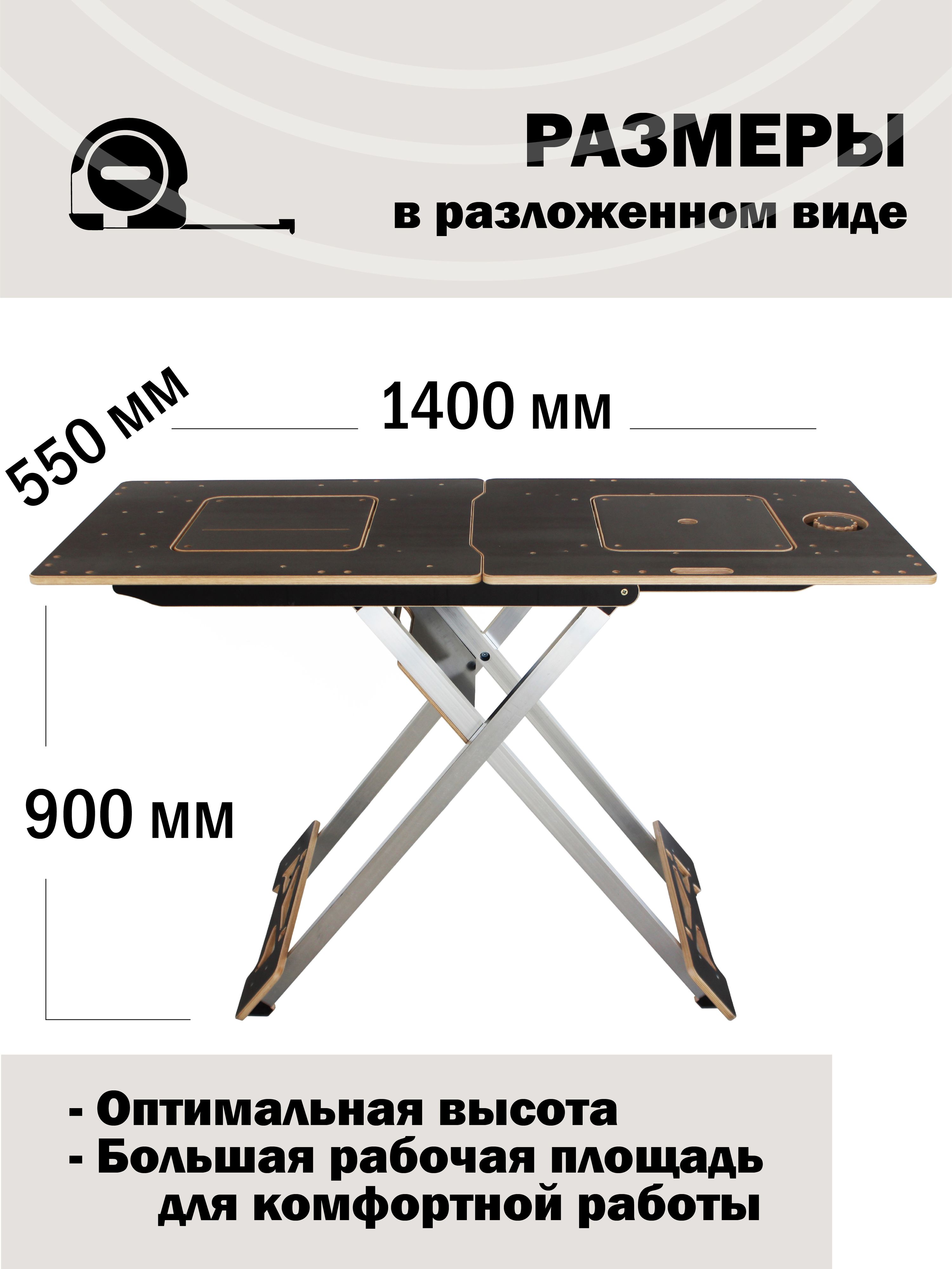 - Возможность переноски и перевозки верстака в автомобиле.