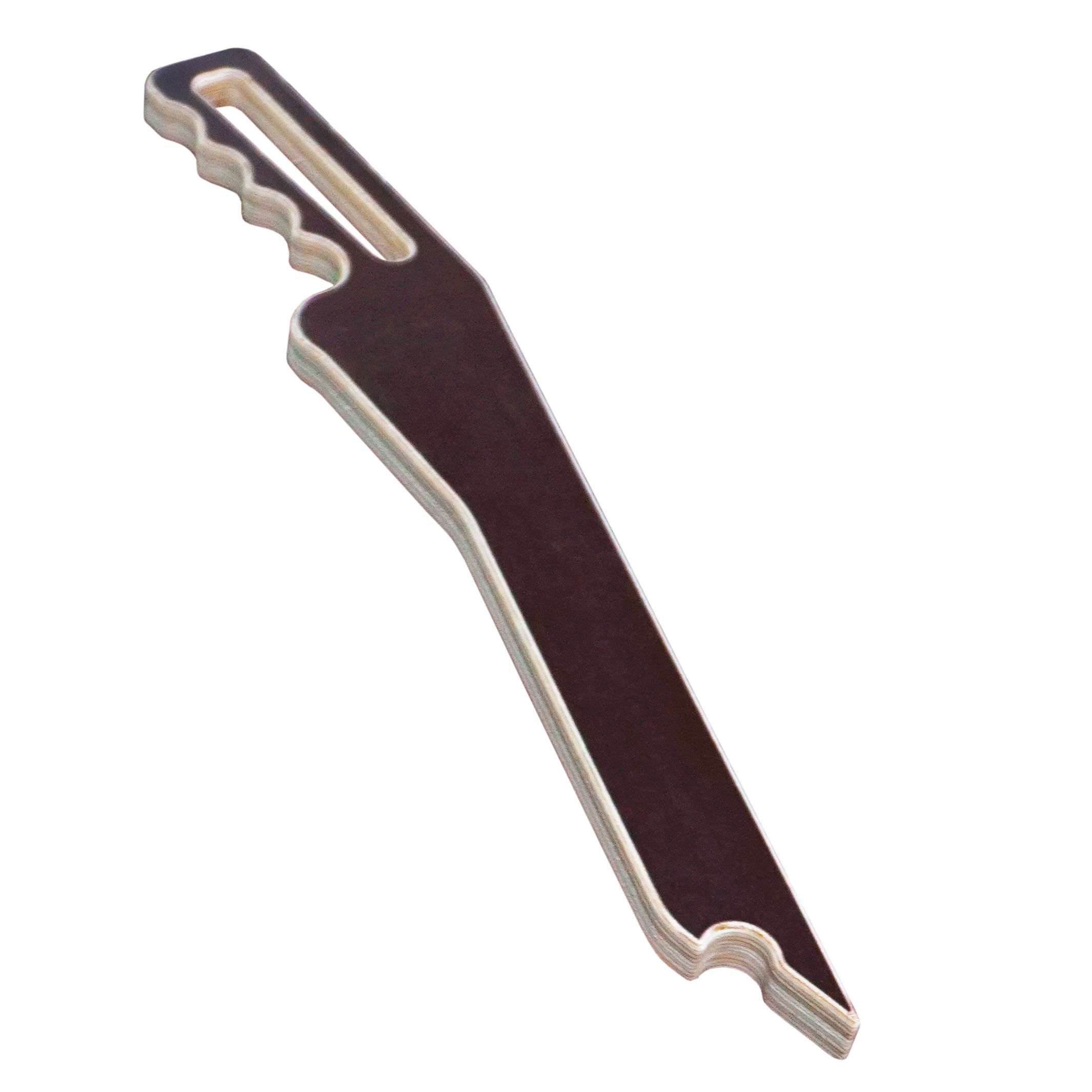 Изготовлен из фанеры 15мм. Края толкателя скруглены. Имеется отверстие для подвеса.